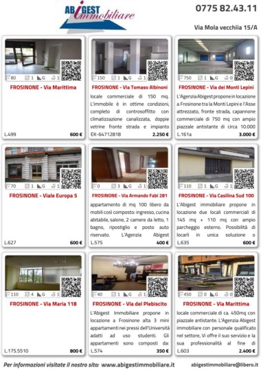 FROSINONE - Via Maria 118 www.abigestimmobiliare.it immobiliari.Per maggiori informazioni