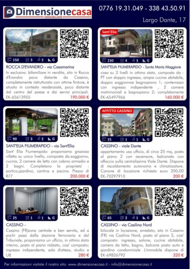 presso i nostri uffici in via Largo Dante, 17 (Fr) E-mail: dimensionecasacassino@gmail.com