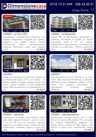 Dimensionecasa Immobiliare via Largo Dante, e-mail dimensionecasacassino@gmail.com