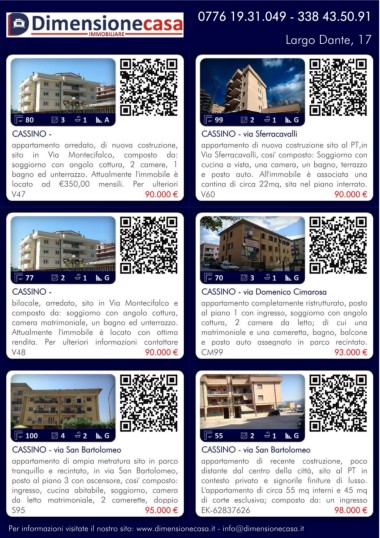 -mail: dimensionecasacassino@gmail.com recarsi presso i nostri uffici in via Largo Dante,