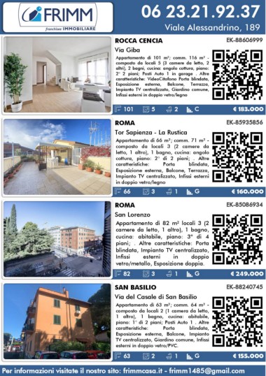 Per informazioni visitate il nostro sito: frimmcasa.it - frimm1485@gmail.com