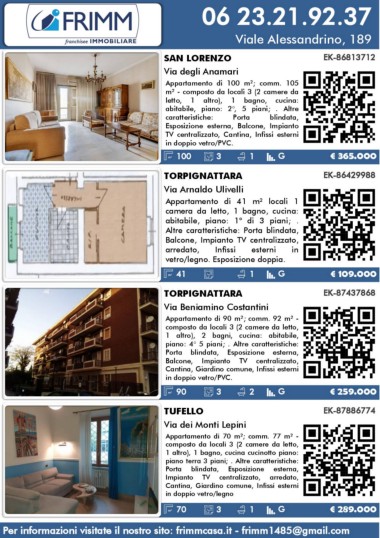 Per informazioni visitate il nostro sito: frimmcasa.it - frimm1485@gmail.com