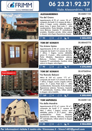 Per informazioni visitate il nostro sito: frimmcasa.it - frimm1485@gmail.com