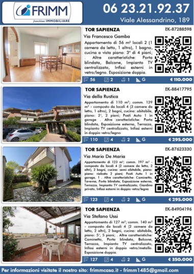 Per informazioni visitate il nostro sito: frimmcasa.it - frimm1485@gmail.com