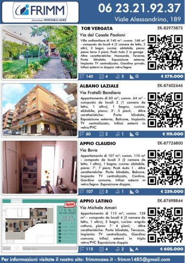 Per informazioni visitate il nostro sito: frimmcasa.it - frimm1485@gmail.com