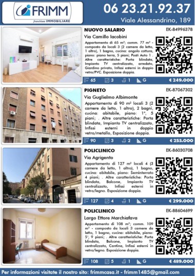 Per informazioni visitate il nostro sito: frimmcasa.it - frimm1485@gmail.com