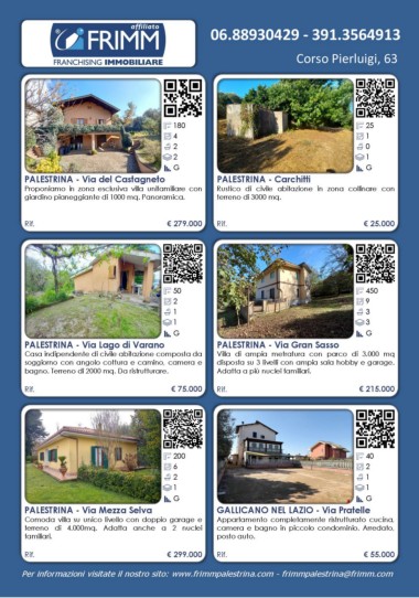 Per informazioni visitate il nostro sito: www.frimmpalestrina.com - frimmpalestrina@frimm.com