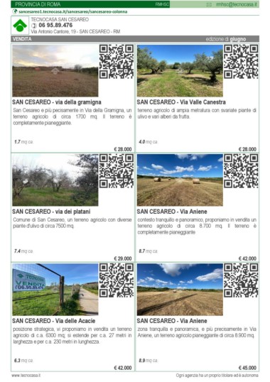 Comune di San Cesareo, un terreno agricolo con diverse contesto tranquillo e panoramico, proponiamo in vendita un