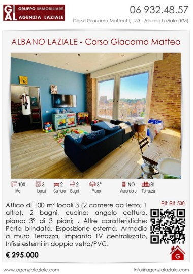 Attico di 100 m² locali 3 (2 camere da letto, 1 Rif: Rif. 530