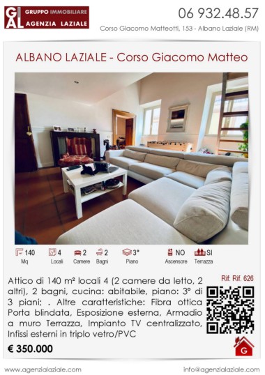 Attico di 140 m² locali 4 (2 camere da letto, 2 Rif: Rif. 626