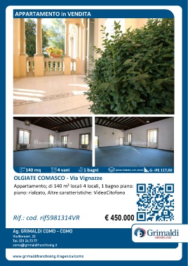 M 140 mq E 4 vani B 1 bagni U piano rialzato, con ascen C G- iPE 117,00