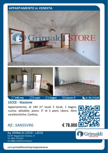 M 140 mq E 5 vani B 1 bagni Upiano 3° C G- iPE 175,00
