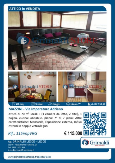 Attico di 70 m² locali 3 (1 camera da letto, 2 altri), 1