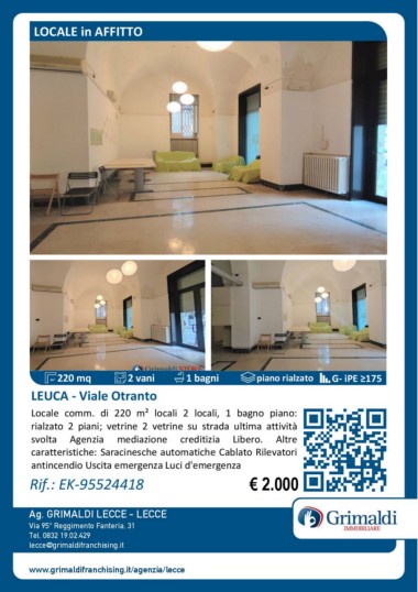 Locale comm. di 220 m² locali 2 locali, 1 bagno piano: