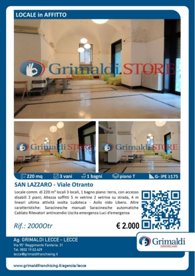 Locale comm. di 220 m² locali 3 locali, 1 bagno piano: terra, con accesso