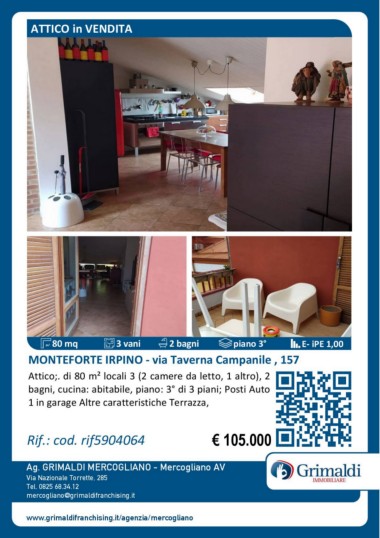 Attico;. di 80 m² locali 3 (2 camere da letto, 1 altro), 2