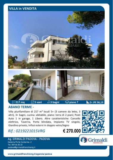 M 217 mq E 5 vani B 3 bagni Upiano T C D- iPE 96,19