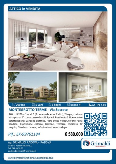 Attico di 200 m² locali 5 (3 camere da letto, 2 altri), 2 bagni, cucina a
