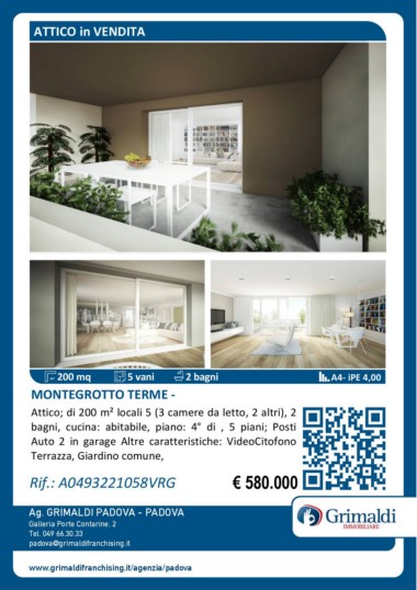 Attico; di 200 m² locali 5 (3 camere da letto, 2 altri), 2