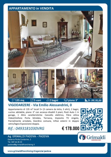 M 135 mq      E  5 vani   B 2 bagni    Upiano 3°       C D- iPE 95,00