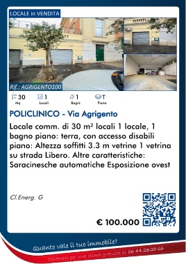 piano: Altezza soffitti 3.3 m vetrine 1 vetrina