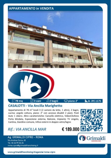Appartamento di 78 m² locali 3 (2 camere da letto, 1 altro), 2 bagni,