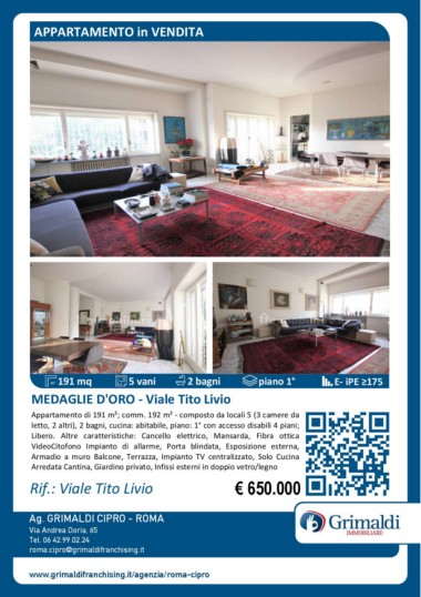 Appartamento di 191 m²; comm. 192 m² - composto da locali 5 (3 camere da