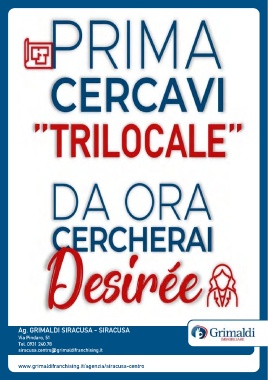 in VENDITA M mq E vani B bagni Upiano C- iPE Q - Rif.: Riemp06 Tratt. Riservata Ag. GRIMALDI SIRACUSA - SIRACUSA Via Pindaro, 51 Tel. 0931 240.78 siracusa.centro@grimaldifranchising.it www.grimaldifranchising.it/agenzia/siracusa-centro